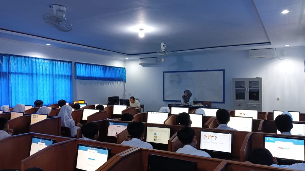 Ruang Lab Komputer 1 MTsN 5 Kuningan memiliki 40 PC Client, 1 PC Teknisi, 3 PC Server dan ruangan ber-AC sehingga membuat siswa nyaman dalam melaksanakan asesmen.