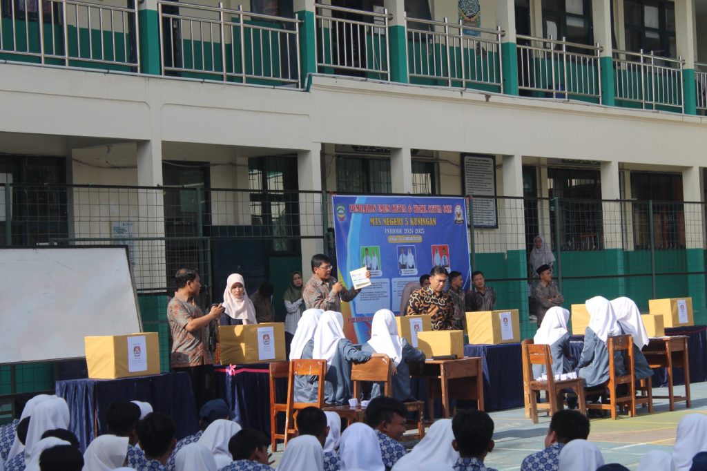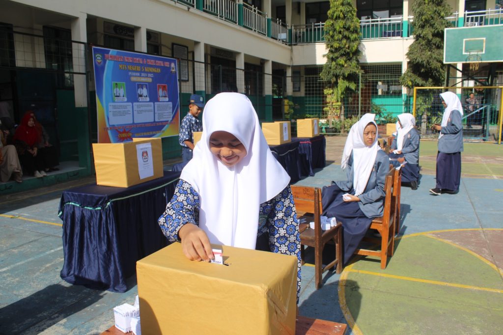 Rabu 24 Januari 2023, Momentum bagi Siswa Siswi MTsN 5 Kuningan untuk memilih Paslon Ketua dan wakil ketua OSIS, pemilihan dibuka dengan sambutan Kepala MTsN 5 Kuningan yaitu bapak. Sueb, S.Ag. , M.Pd. dalam sambutannya beliau menyampaikan bahwa Pemilihan Ketua OSIS merupakan Pesta Demokrasi sekolah, dimana setiap siswa punya hak benas untuk memberikan suaranya pada Paslon yang mereka anggap cakap untuk menjadi ketua dan wakil ketua OSIS.