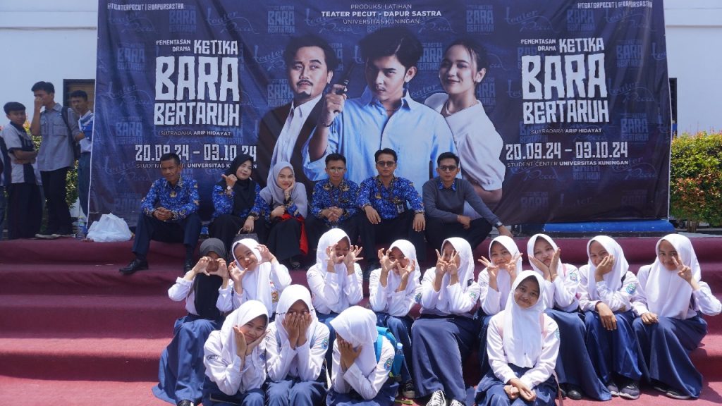 Sebanyak 308 siswa MTsN 5 Kuningan dengan penuh antusias menyaksikan pertunjukan teater yang berjudul “Ketika Bara Bertaruh” di Gedung Student Center Universitas Kuningan, pada Selasa, 01 Oktober 2024. Pertunjukan yang dipersembahkan oleh kelompok teater Pecut ini berhasil memikat perhatian para siswa, berkat tema mendalam serta pesan moral yang kuat yang diangkat dalam pementasan.